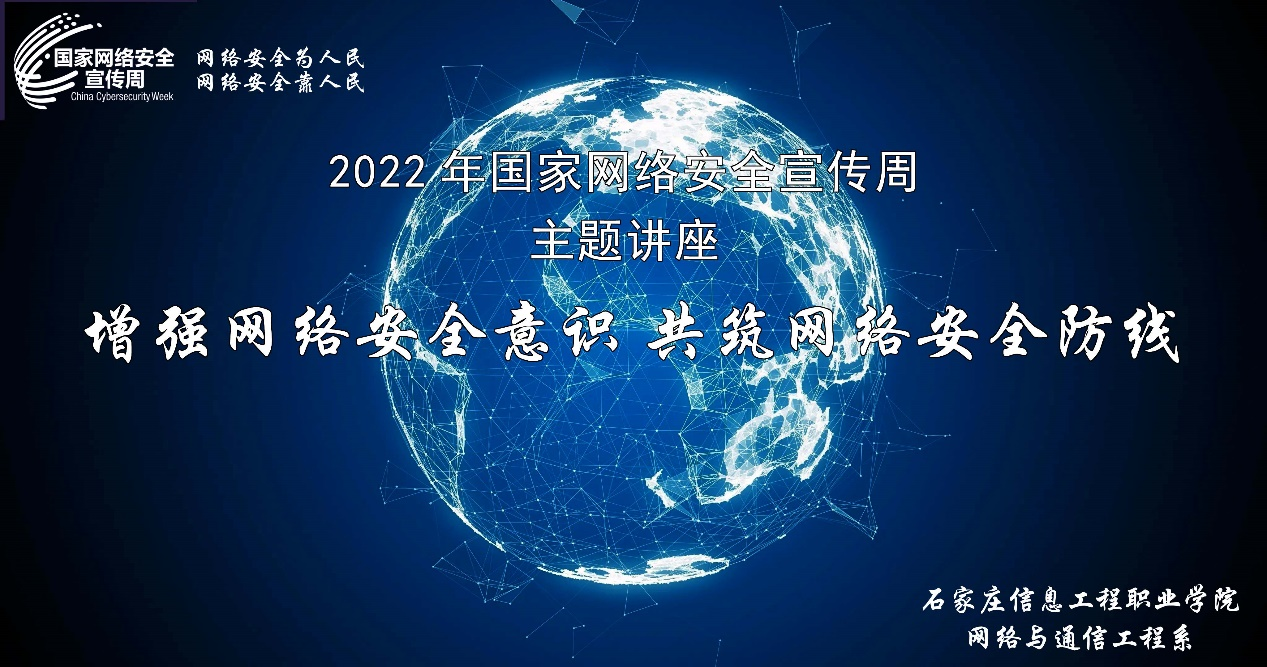 2022年国家网络安全宣传周为9月5日至11日,网络与通信工程系围绕“网络安全为人民、网络安全靠人民”这一主题,开展了网络安全线上讲座、网络安全主题文化沙龙和“网络安全进家庭”宣传等系列活动。