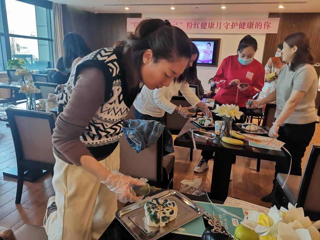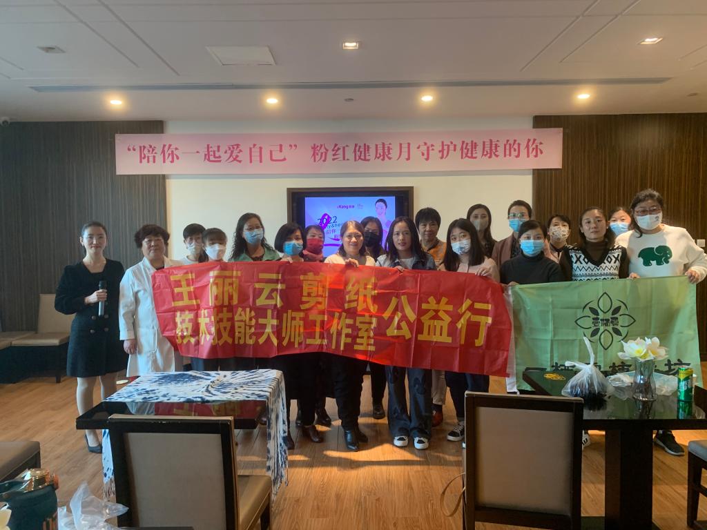 10月22日,王丽云剪纸技术技能大师工作室团队联合河北省冀台联文化产业园,走进石家庄爱康卓悦体检中心举行“‘陪你一起爱自己’粉红健康月守护健康的你”活动,为该活动提供非遗植物染的现场互动体验服务。