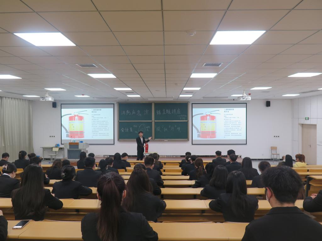 为全面提高会计系学生的消防安全意识,切实提高学生面对火灾和突发状况的处理能力。会计系于11月9日在知新楼2-4连廊210阶梯教室开展“消防应急演练”主题讲座。