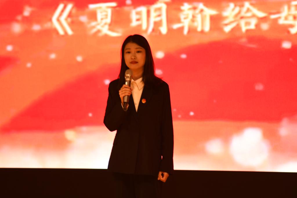 九组参赛选手依次登台展示,配合着精心准备的背景音,声情并茂、极具感染力地诵读了《杨开慧写给挚爱润之的信》《夏明翰写给郑家钧的家书》《刘世忠写给母亲的家书》《赵云霄写给女儿的家书》等。一封封家书,道不尽期盼;一张张纸笺,蕴藏着坚定信念;一笔一划,诉不尽衷肠。家书的深情朗诵把会场同学带入到艰苦斗争的革命岁月,家书背后的感人故事感染了每一位社员,获得评委和观众阵阵掌声。