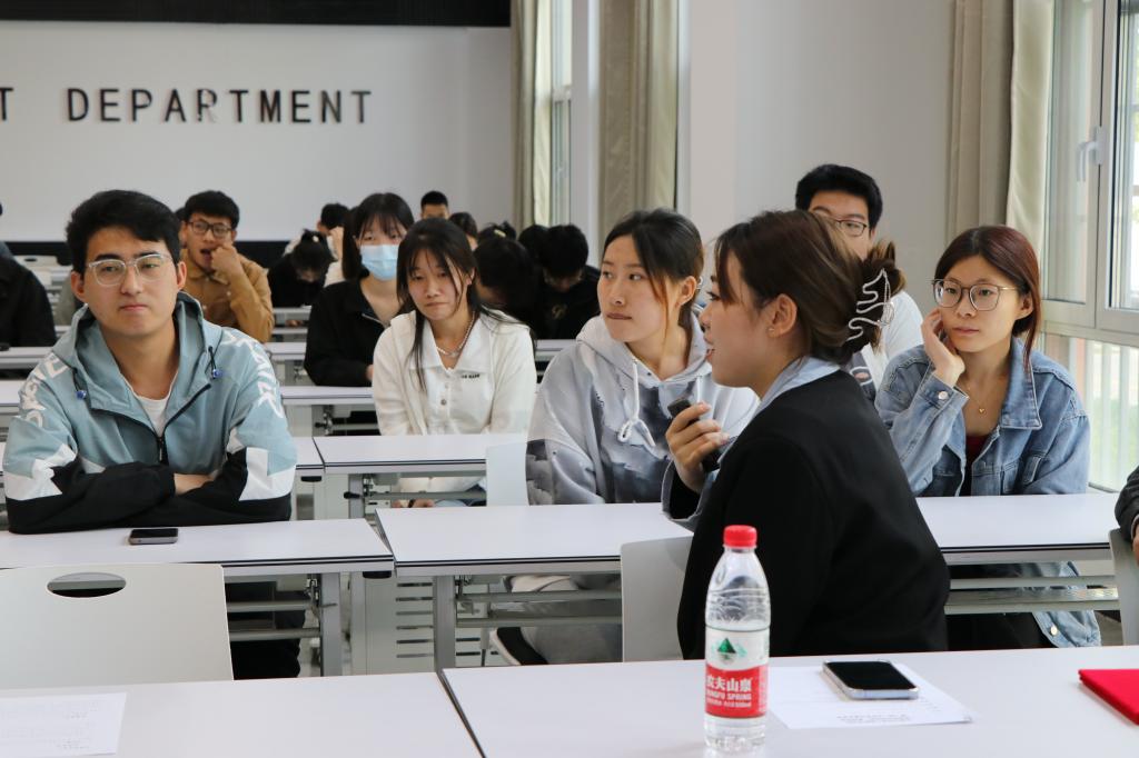在交流互动环节,同学们积极提问、气氛热烈,有的同学询问了专业课的学习方法,有的同学则关心考试难度和通过率等问题,学长学姐一一作了详细解答。