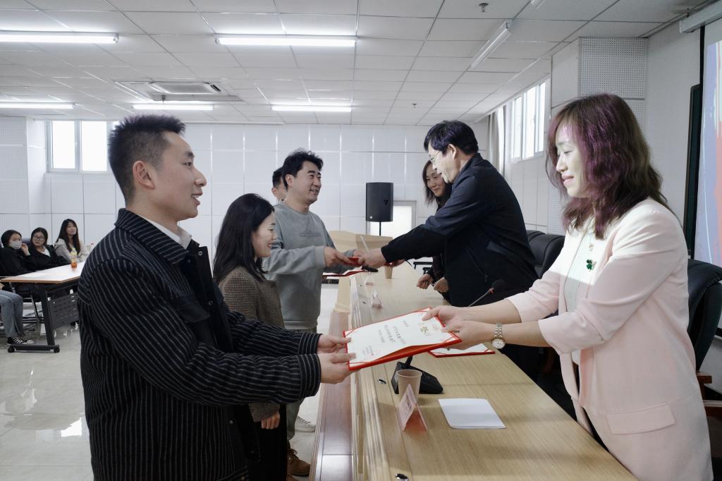 经济贸易系授予李国辰、张帅兴、戈福苗、郭世鹏“优秀校友”荣誉称号,并颁发证书。