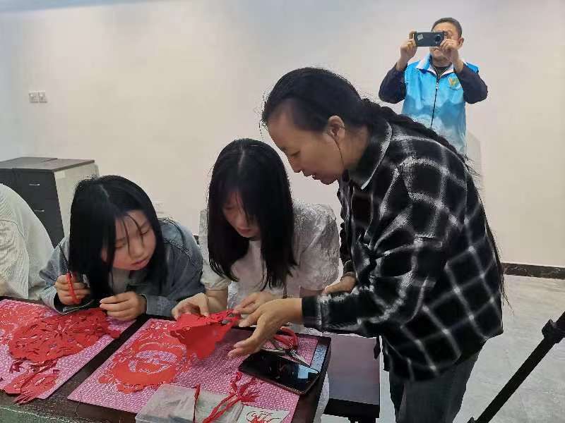 本次“创业服务高校行”活动共分为四大板块:创业服务高校行、职业培训高校行、困难帮扶高校行、政策宣传高校行。作为“职业培训高校行”模块的亮点活动,本次活动邀请王丽云剪纸技术技能大师工作室团队现场为学生展绝活、授经验、传心得,王丽云老师还结合自身经历,讲述了剪纸技艺传承的匠心故事。