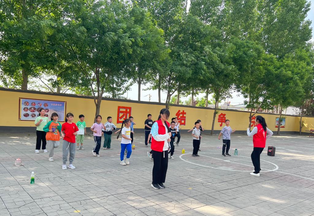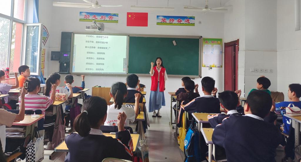 世界杯官网学生化身小老师开展教学活动。教室里,22级旅游管理三班孙汶慧、22级会计9班宋璐阳认真教导学生发音,带领学生朗诵《请党放心,强国有我》,同学们慷慨激昂,深情并茂,铿锵有力的朗诵声在耳边回响,激情澎湃的爱国情怀在心头荡漾。操场上,22级软件五班韩璐萱、梁鑫玉耐心指导学生的动作,欢快的音乐声《向快乐出发》响起,孩子们伴随着动感的节奏快乐的舞蹈,稚气的脸上露出灿烂的笑容,一举一动展现出少年的蓬勃朝气。
