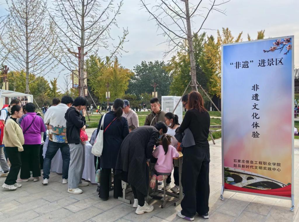 11月3日,传媒艺术系联合赵县县委宣传部、赵县新时代文明实践中心,在赵县赵州桥景区举办非遗文创集市活动。此次活动旨在推动校地战略合作,实现共同发展,同时为公众提供一次难忘的非遗文化体验之旅。