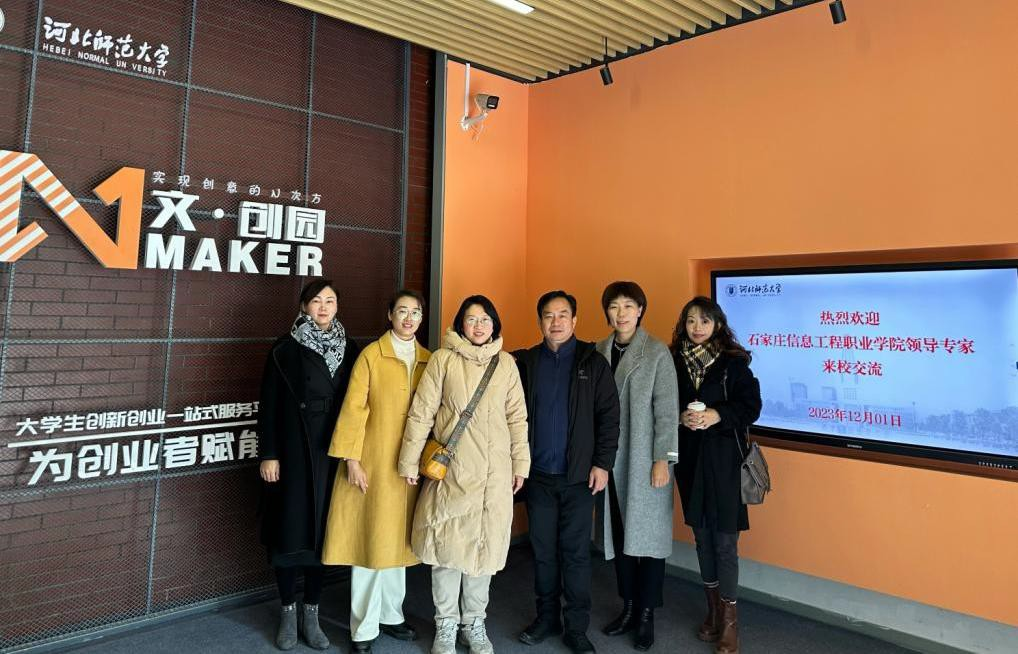 随后,一行人参观了河北师范大学“文·创园”。河北师范大学就业创业中心副主任刘增奇、创新创业培育科科长张权详细介绍了“文·创园”通过鼓励实践和创造,来实现职业发展目标的建设理念,分享了在线项目案例。