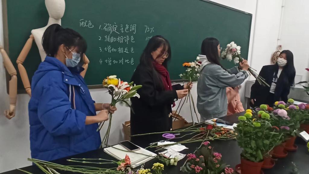 诗情花意绽芳华。为提升同学们的专业技能和审美情趣,近日,农林牧医系在知新6号楼园林实训室举办插花与花艺设计知识讲座。