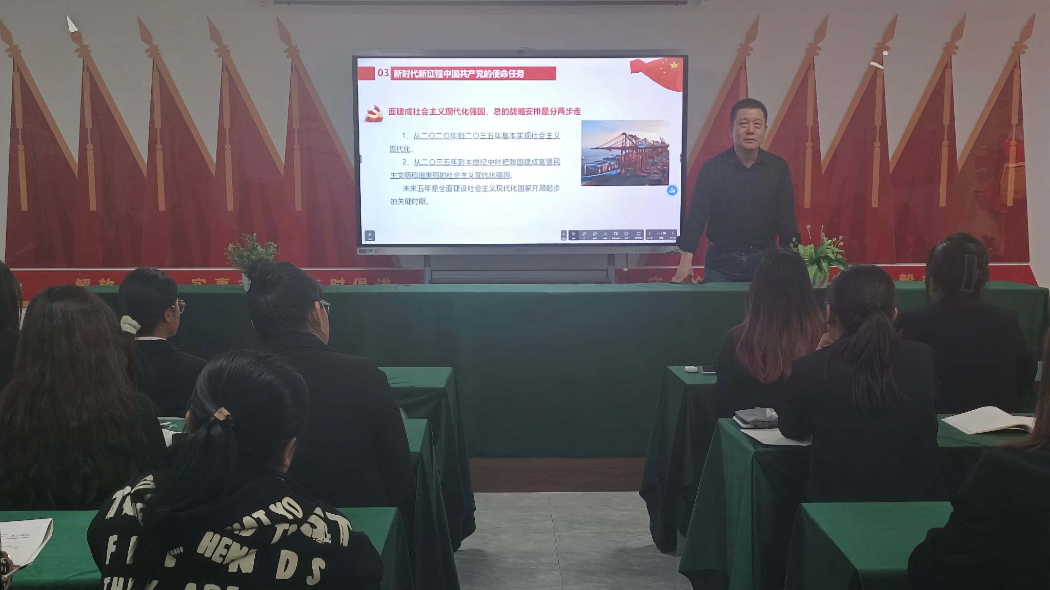 3月21日,会计系副主任沈丽带领同学们学习了解中国共产党的性质、宗旨、指导思想。她指出,应自觉做共产主义远大理想和中国特色社会主义共同理想的坚定信仰者和忠实实践者,在全面建设社会主义现代化国家过程中贡献青春力量。