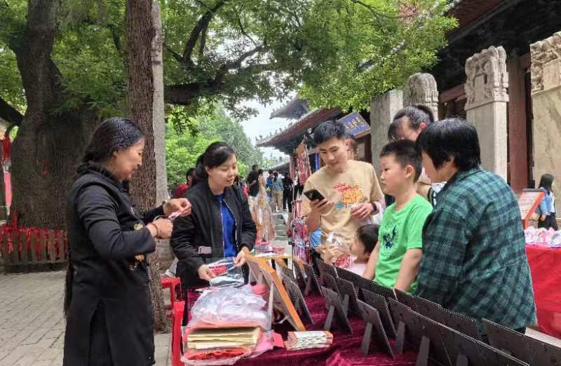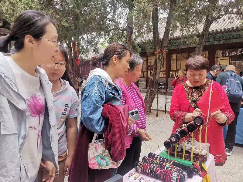 志愿团队为景区游客带来了剪纸、绳结制作、糖人糖画、米上刻字等非遗技艺和体验,并在活动现场为游客派发剪纸作品。志愿者们还通过工作人员的讲解,游览了古寺,考察了正定文创产品,感叹了千年古韵的魅力,切身感受到了河北深厚的文化底蕴。活动中,志愿团队传播了五四精神,也提高了服务意识。