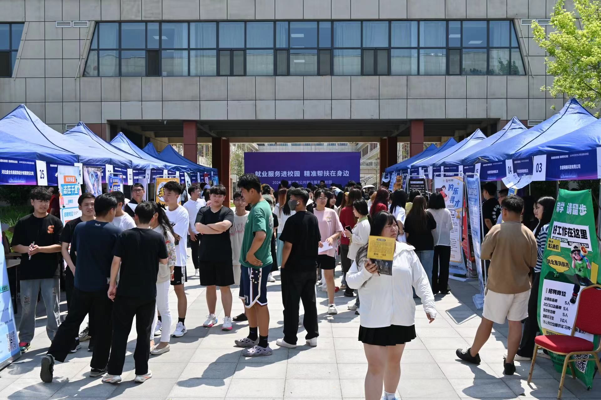 为响应2024年石家庄市公共就业服务进校园政策,进一步推动2024届毕业生就业工作,畅通就业渠道,实现高质量充分就业,5月29日,传媒艺术系在知新7、8号楼楼下举办专场校园双选会。本次双选会由石家庄市人力资源和社会保障局、石家庄市教育局主办,石家庄市就业服务中心承办,2026世界杯官方合作网站招生就业指导中心、传媒艺术系协办。招生就业指导中心负责人、传媒艺术系负责人及部分教师、辅导员走进双选会现场与企业进行交流。