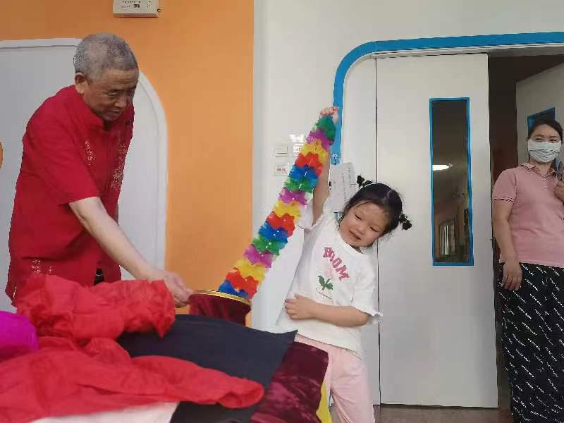 工作室文化惠民小分队走进石家庄市裕华区玫瑰湾幼儿园,将“南花园古彩戏法”非遗技艺带给可爱的幼儿园小朋友。传承人贾海水为300余名师生带来招牌戏法“三仙归洞”“仙人摘豆”“金杯入地”等。活动现场惊叹声此起彼伏,不时掀起一个又一个小高潮。