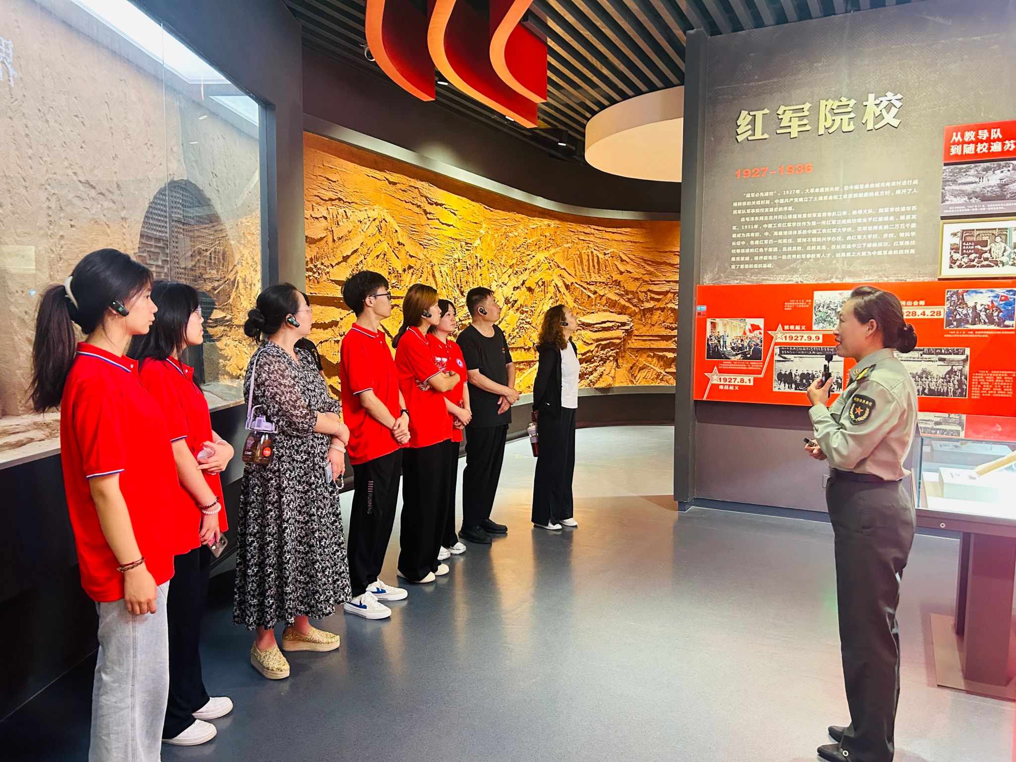 实践团来到位于浆水镇的中国人民抗日军政大学陈列馆。陈列馆以时间顺序全面展示了抗大学员在战争年代生活、学习的真实写照以及抗战时期抗大的创建与发展。看着展出的图片、文件、学习用品、生活用品等实物,听着讲解员生动的讲述,实践团成员们内心汹涌澎湃,老一辈无产阶级革命家边学习、边战斗的峥嵘岁月在眼前重现。革命熔炉的火焰,点燃过每一个抗大学员的心,也点燃了实践团每位成员的心,大家纷纷表示要将红色精神内化于心、外化于行,自觉向革命先烈看齐,脚踏实地、勇于担当。