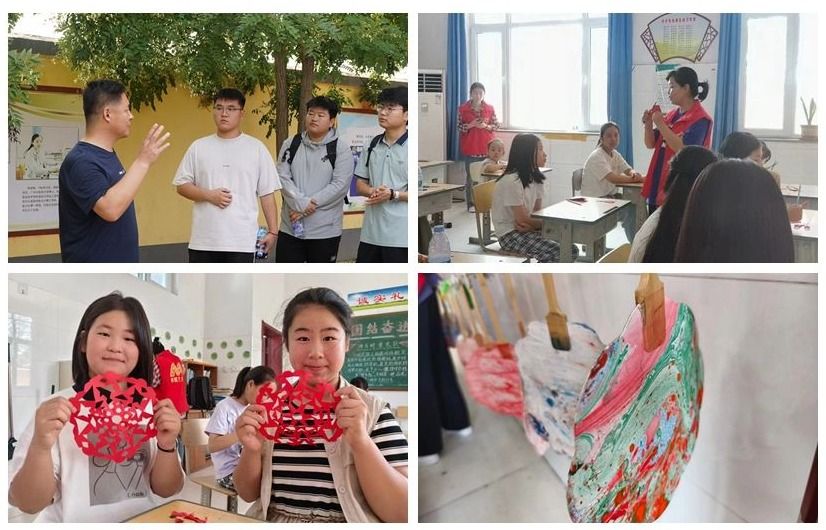 传统文化同赋能,打造育人“金课堂”。7月6日,传媒艺术系师生30余人赴正定县曲阳桥镇周家庄小学开展暑期“三下乡”社会实践活动。在周家庄小学,曹江波校长对学校的历史进行了回顾,使同学们对乡村小学的悠久历史和发展现状有了深入了解。在志愿服务活动中,志愿者向小学生们介绍非遗体验项目的历史渊源和文化内涵,讲解剪纸、漆扇、绒花的制作步骤和技法要点。剪纸活动由省级技能大师工作室——王丽云剪纸技术技能大师工作室负责人付玉霞老师进行指导,并为大家示范剪纸技法,耐心讲解剪纸的基本步骤与注意事项。同学们则化身为灵巧的艺术家,灵活地穿梭于红纸之间,一张张生动有趣的图案便跃然纸上。在探索漆扇制作的过程中,同学们被那细腻温润的漆面所吸引,每一道刷漆、每一笔描绘都凝聚着匠人的心血与智慧。绒花的制作,让同学们体验到了从平凡到非凡的蜕变,原本不起眼的丝线、布料,在他们的巧手下,逐渐变成了一朵朵娇艳欲滴的花朵。