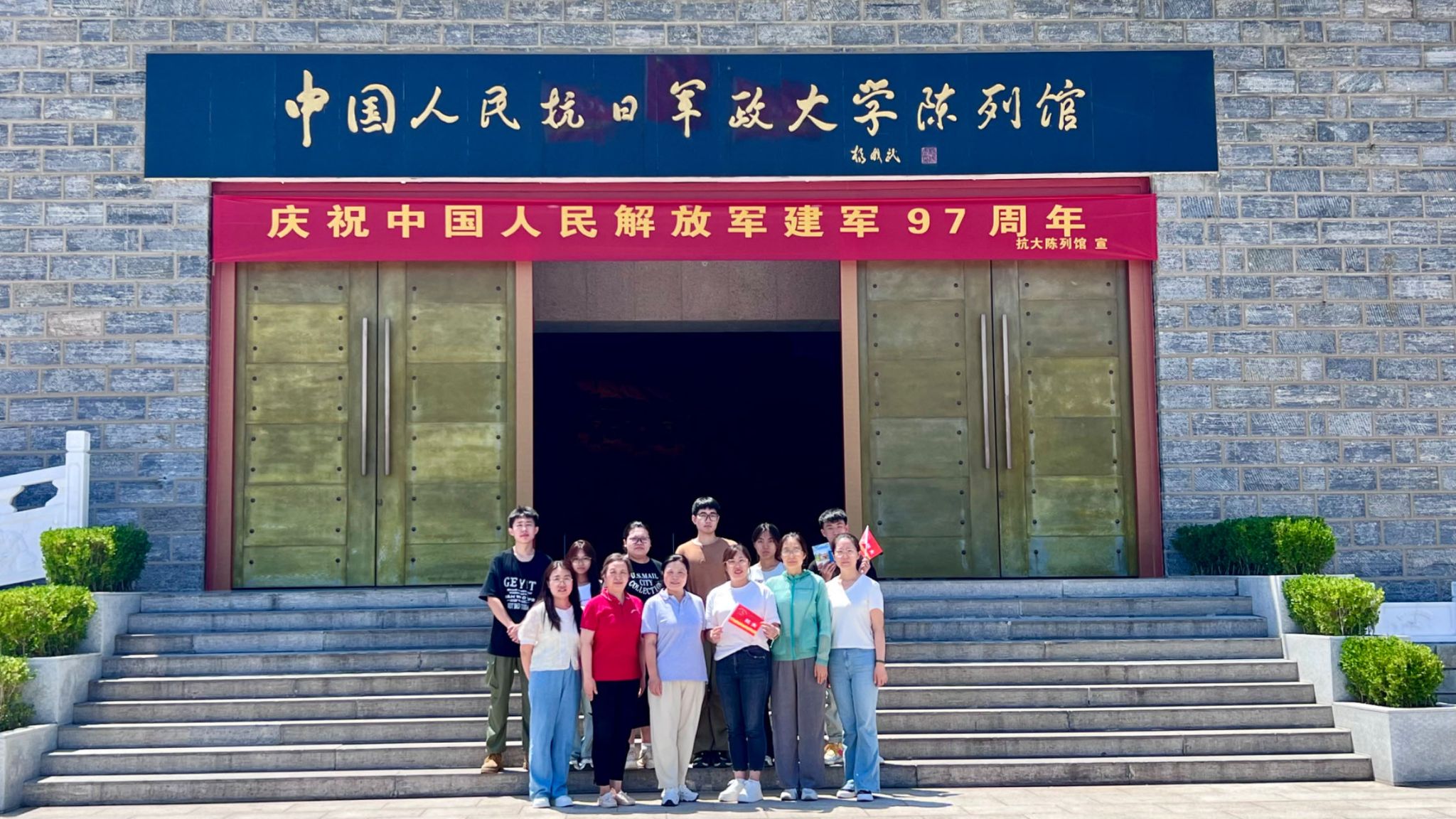 弘扬“八一”精神,传承红色血脉。8月1日上午,马克思主义学院师生一行来到位于邢台市信都区前南峪村的中国人民抗日军政大学陈列馆参加庆祝中国人民解放军建军97周年系列活动。师生一同见证了抗大第七期学员后代等向抗大陈列馆捐赠珍贵文物仪式,聆听了抗大副校长何长工主持设计我军第一面军旗的历史瞬间和“军歌之父”、抗大音乐指导郑律成创作《中国人民解放军军歌》背后的故事,观看了红色节目展演,在嘹亮的《中国人民解放军军歌》中活动落下帷幕。之后,师生一同参观了抗大陈列馆,重温革命峥嵘岁月,感悟抗大伟大精神。
