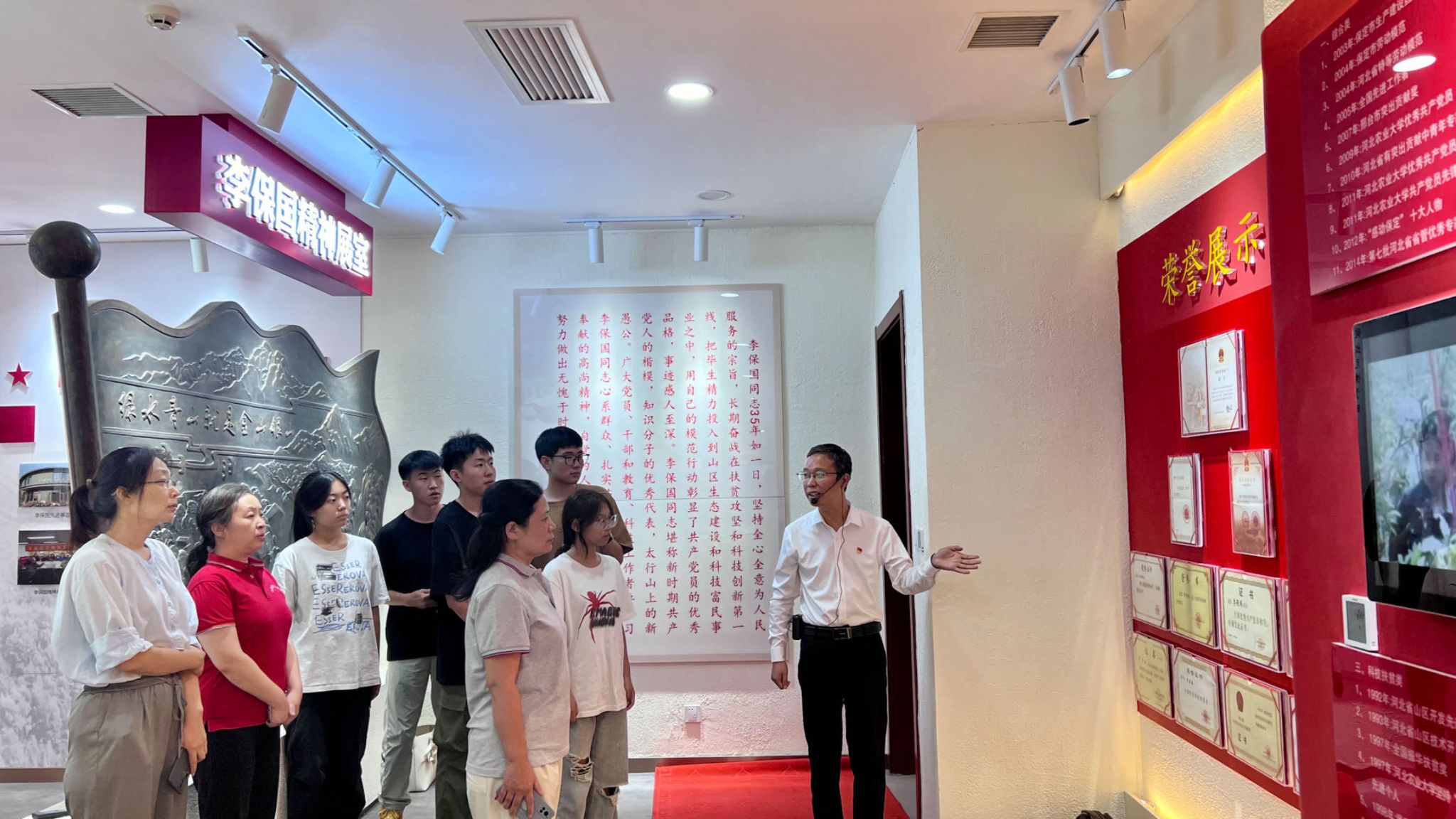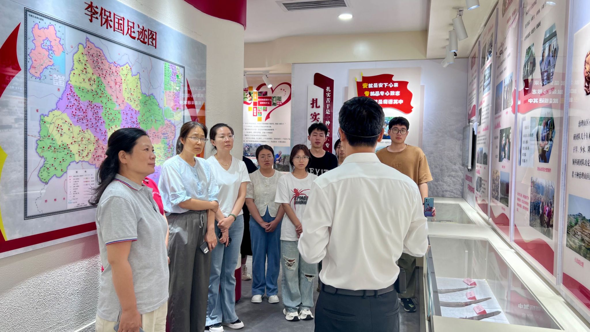 追寻“太行山上的新愚公”足迹,弘扬李保国精神。马克思主义学院师生来到位于前南峪村的中共邢台市信都区委党校(原李保国干部学院)。在李保国精神展室,师生们详细了解了“太行山上的新愚公”河北农业大学教授李保国三十五年如一日扎根太行,每年进山“务农”超过200天,让140万亩荒山披绿,带领10万群众脱贫致富奔小康,帮助山区农民增收28.5亿元的一生。1981年,李保国受聘留校任教之后就来到太行深处,第一个工作站点就是前南峪村,一待就是15年。在李保国故居,两间存放农具的房子改造的简陋的房间中,师生们感悟了李保国心系群众、扎实苦干、奋发作为、无私奉献的高尚精神。当年为了做好调研,李保国夫妇把年迈的母亲和一岁多的儿子李东奇也接到这里,一住就是4年多,成了地道的“山里人”。