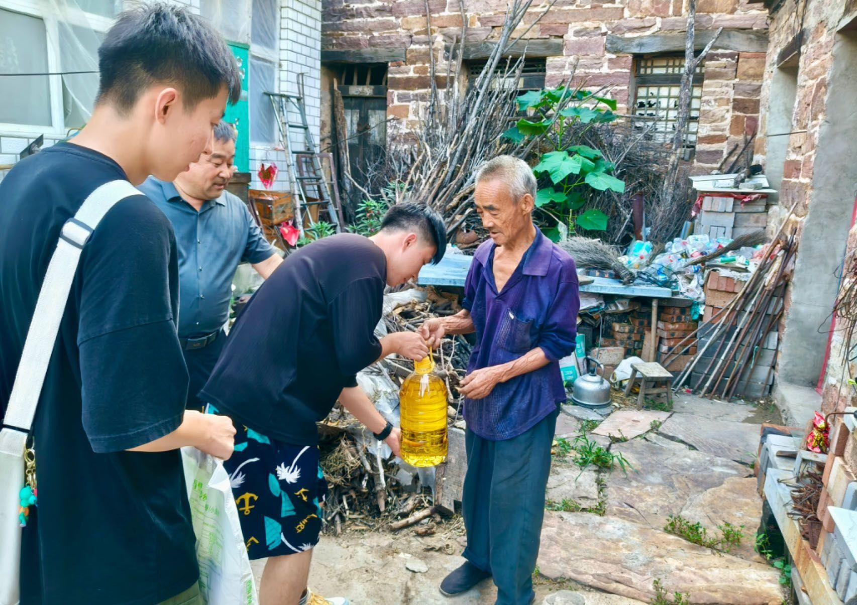 师生还走访慰问了村内重残和五保孤寡独居老人,了解他们的近期生活情况,并送去面、油等生活物资。