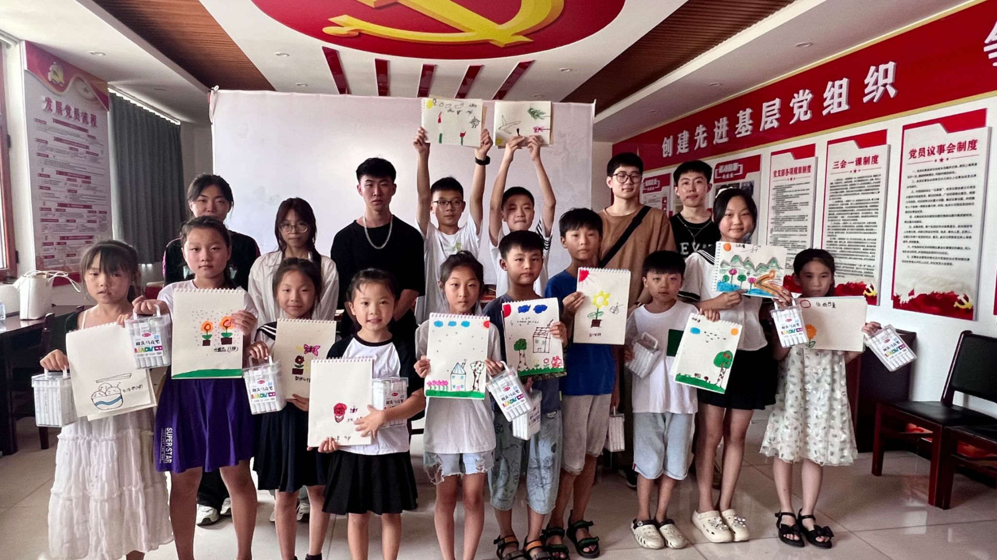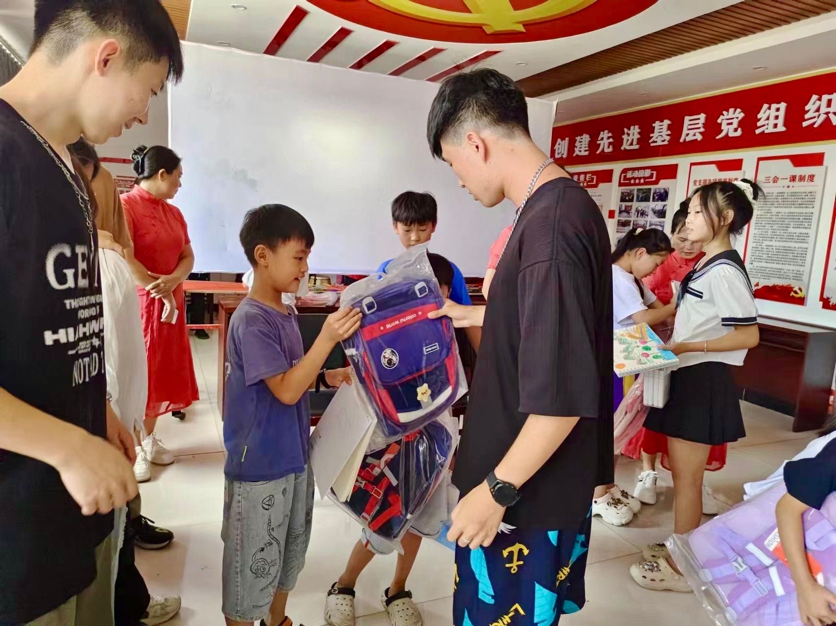 马克思主义学院师生向下解村小学生捐赠了书包与绘画用具。同学们带着小学生们一起作画,以画传情,希望孩子们能将家乡优秀的非遗文化继承下去,发扬光大。