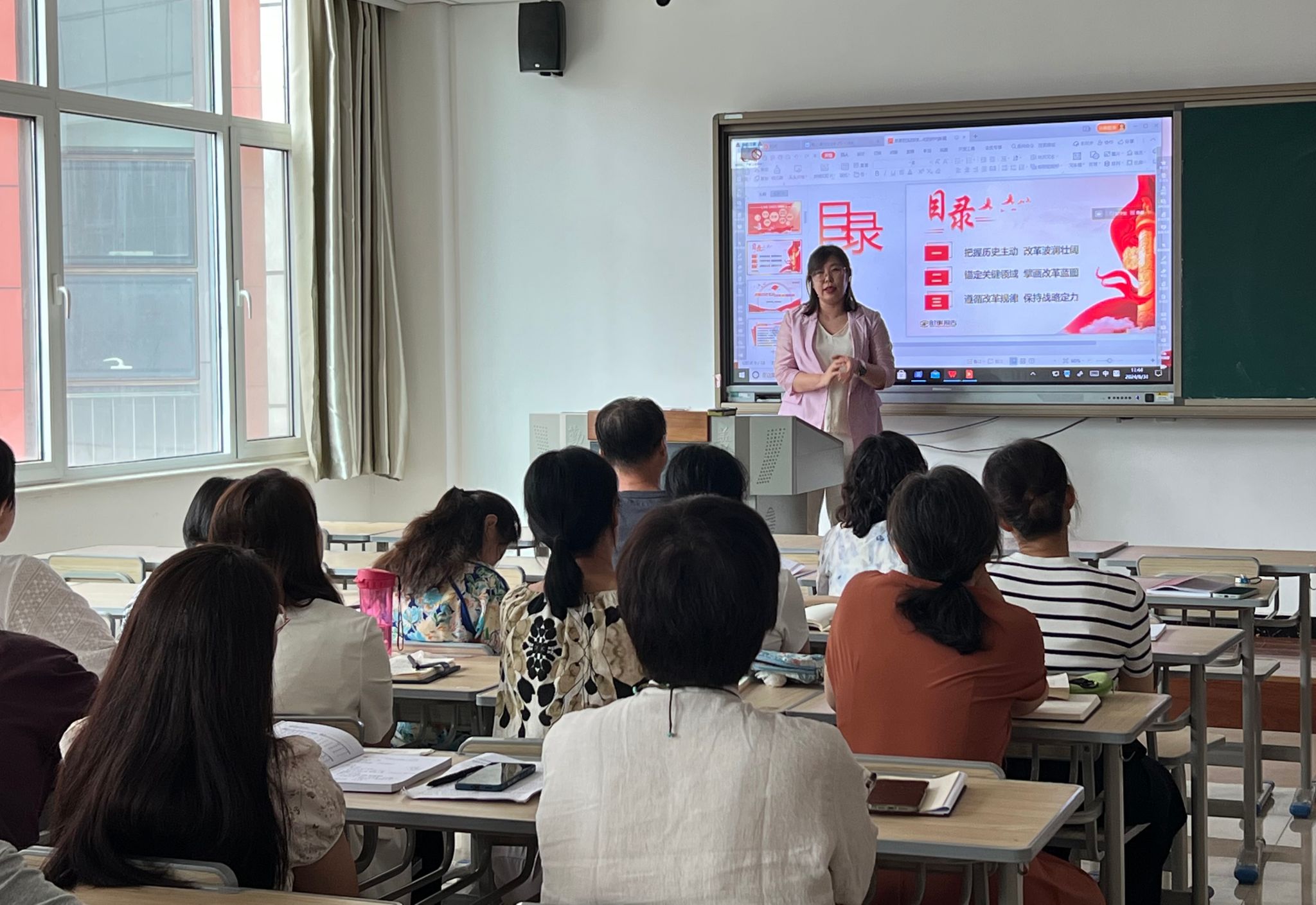 形势与政策教研室主任杜冰传达了教育部《关于做好2024年秋季学期全国高校“形势与政策”教学工作的通知》精神。她围绕如何讲清楚党的二十届三中全会精神、需要讲清楚哪些重要内容进行备课说明,着重从新时代全面深化改革取得的历史性伟大成就、“四个迫切需要”的深刻考量、进一步全面深化改革的目标任务、重大举措、进一步全面深化改革的原则的丰富内涵等问题进行深刻阐述和解读。
