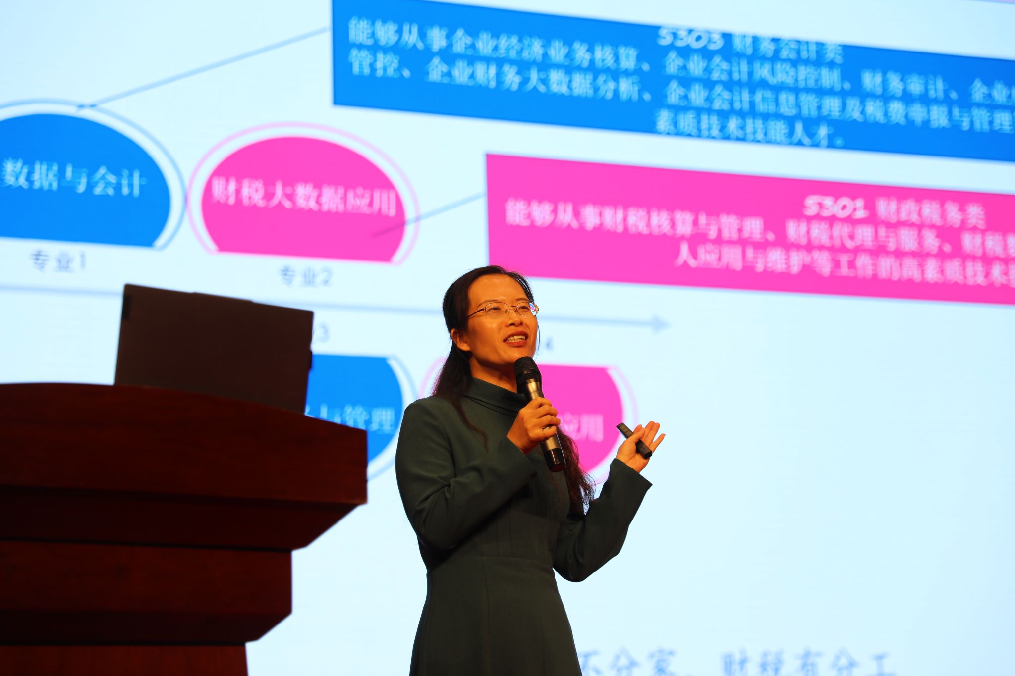 在专业教育环节,姜明霞主任进行了详尽的专业介绍。她不仅剖析了当前会计专业的现状与挑战,还针对性地提出了应对策略。她强调,在时代变迁与科技进步的浪潮中,会计专业正迎来前所未有的机遇与考验,因此,同学们需紧跟时代步伐,不断学习新知,强化创新能力与实践能力,以应对未来社会的多元化需求。