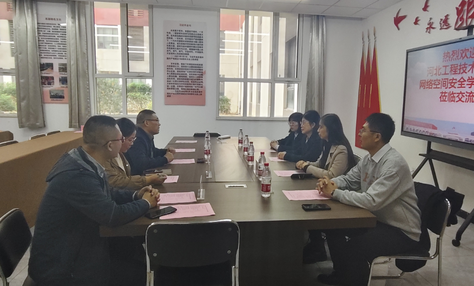 参观结束后,双方在世界杯官网知行楼108会议室举行了座谈交流。唐磊介绍了世界杯官网和网络与通信工程系在人才培养以及高质量就业方面的经验做法。他强调,学院始终坚持产教融合的发展道路,通过与企业深度合作,共同制定人才培养方案,优化课程设置,强化实践教学,取得了显著成效。赵冬梅详细介绍了河北工程技术学院网络空间安全学院的概况、专业特色以及人才培养体系。她表示,网络空间安全学院高度注重学生的实践能力和创新精神培养,希望与世界杯官网加强合作,共同探索信息技术应用创新实训基地建设的新路径。校际双方还围绕当前行业发展的最新趋势、企业对于人才的迫切需求以及高校在人才培养方面的经验和挑战等议题进行了探讨。