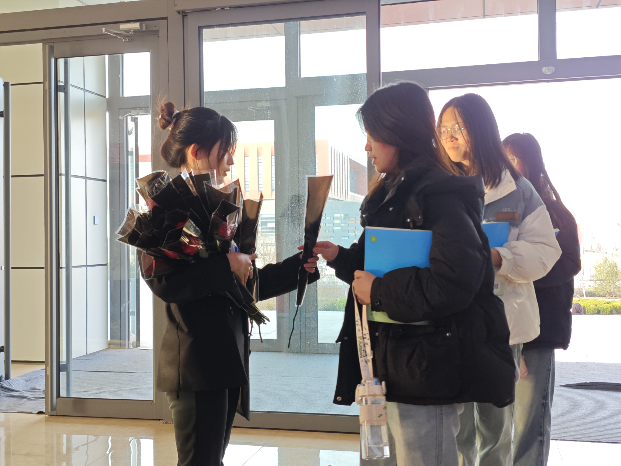讲座开始前,会计系为每位女同学送上了一支精美的康乃馨,向大家表达节日的诚挚祝福和美好问候。同学们手捧鲜花,喜悦与感动之情溢于言表,纷纷拿起手机记录下这美好而暖心的瞬间,留下珍贵的回忆。