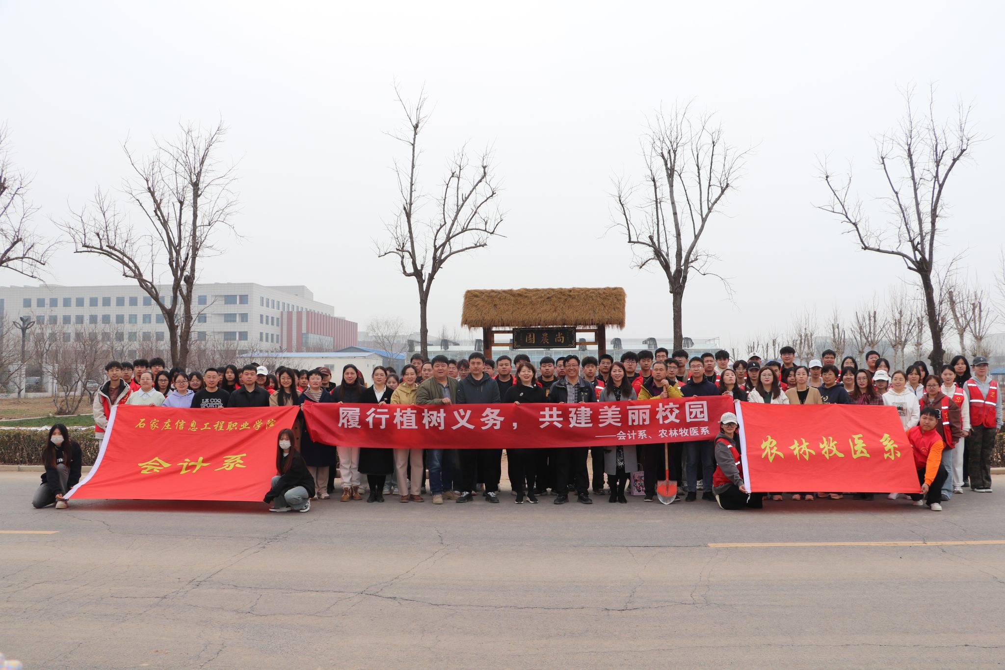 春回大地,万物复苏,在第47个植树节到来之际,农林牧医系与会计系携手在尚农园共同开展“履行植树义务 共建美丽校园”主题植树活动。来自农林牧医系党总支、会计系党总支的70余名师生参加。