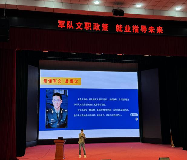 为助力学生明晰职业发展方向,拓宽就业视野,3月17日下午,招生就业指导中心特别邀请河北政法学院王浩正老师,开展一场关于军队文职政策解读、就业指导及未来发展的专题讲座。本次讲座在学院昭德礼堂举行,吸引众多有志于投身军队文职工作的学生前来聆听。