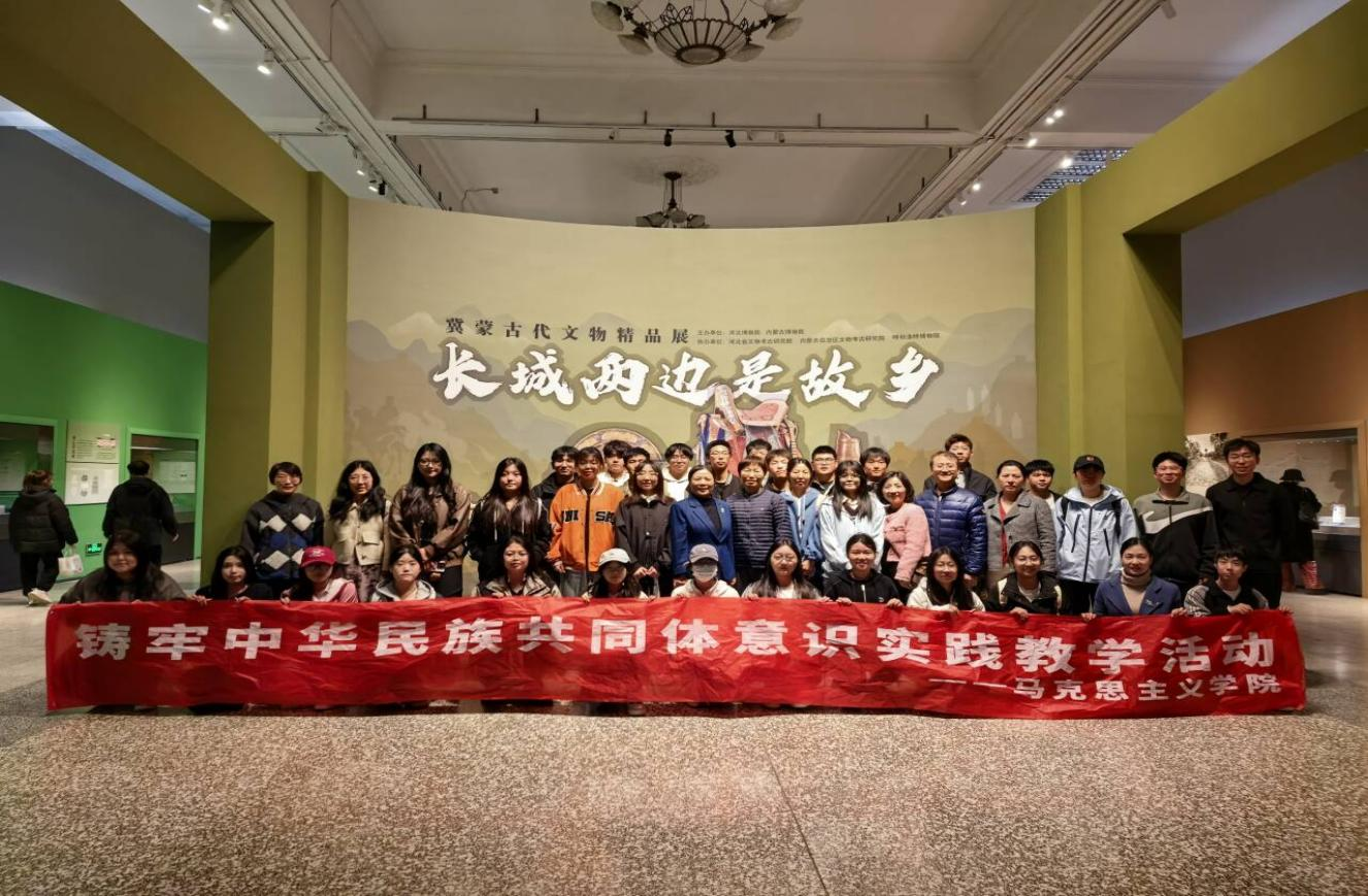 本次活动是《中华民族共同体概论》课程实践教学“石榴花开 同心铸梦”系列活动之“文物话中华:多元一体民族共融”。师生们首先参观河北博物院的“长城两边是故乡——冀蒙古代文物精品展”,在这里,成晓丽老师进行了现场教学,让学生们深入了解农耕文化与游牧文化的碰撞、交流。然后在张桂萍老师声情并茂的讲解引领下,学生们通过一幅幅生动史料、一件件珍贵文物,深刻理解了中华民族多元一体格局的形成与发展脉络。随后张桂萍老师又带大家探寻了河北博物馆的镇馆之宝,聆听了历史文物的声音。