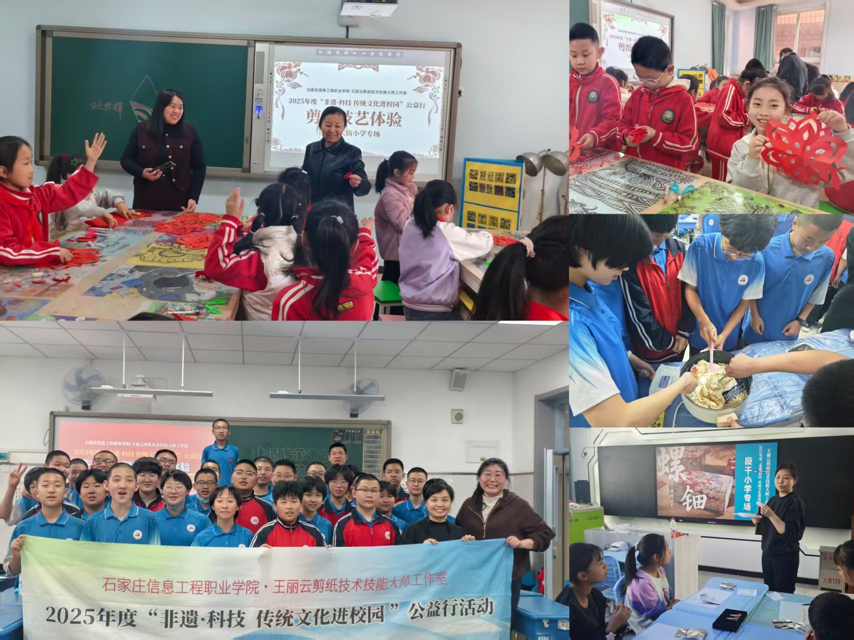 为积极培育和践行社会主义核心价值观,继承和弘扬中华优秀传统文化,引导广大师生知党史、颂党恩、跟党走,将爱国情、强国志转化为报国行,用中华优秀传统文化浸润青少年成长之路,由传媒艺术系王丽云剪纸技术技能大师工作室主办的2025年度“非遗·科技 传统文化进校园”公益行活动于4月16日圆满落幕。