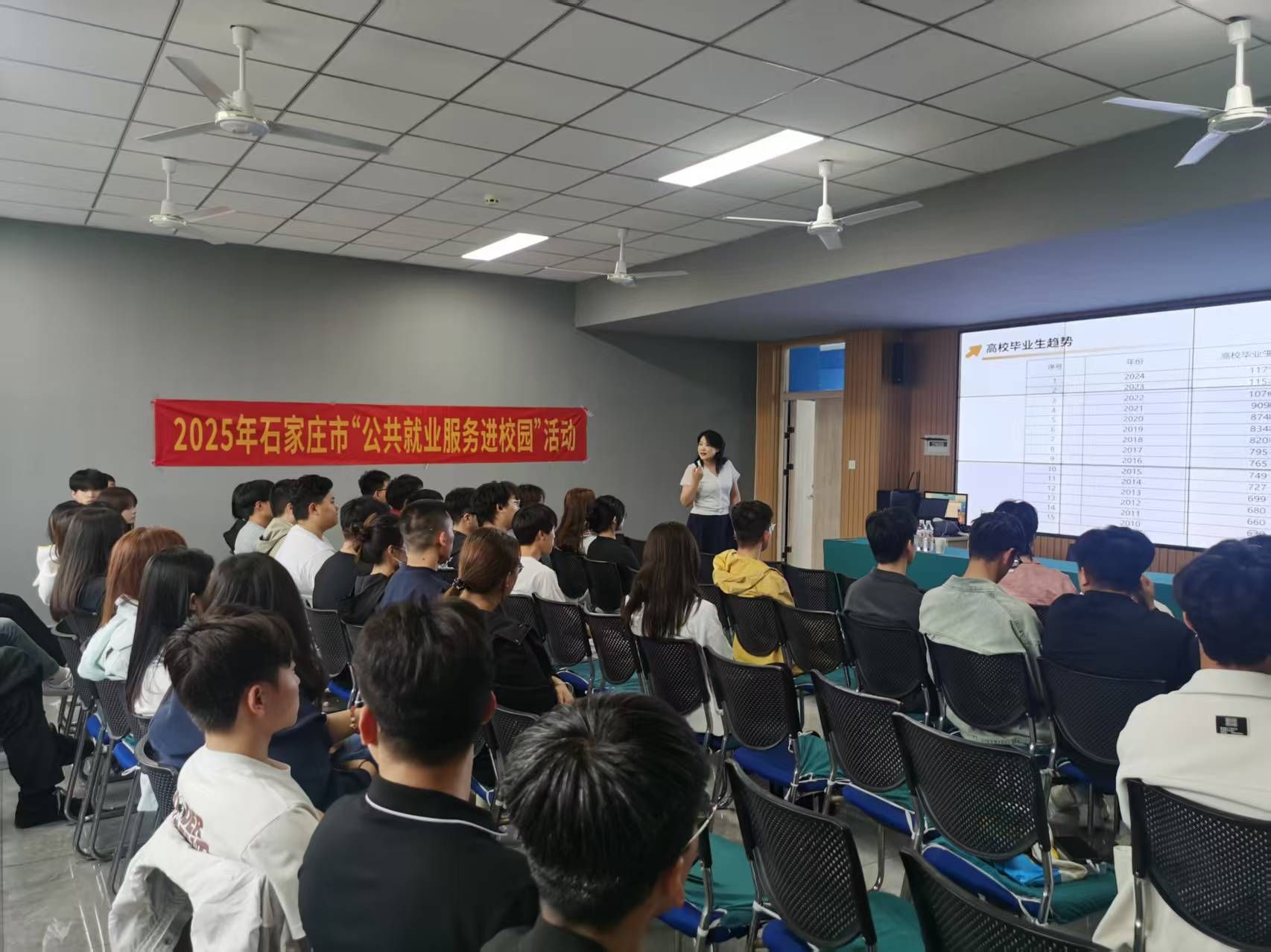 为贯彻党中央、国务院关于做好高校毕业生就业工作的决策部署,落实省委、省政府有关要求,推动公共就业服务向前延伸,多措并举促进毕业生就业创业,世界杯官网特邀石家庄市就业服务中心开展“公共就业服务进校园”系列宣讲活动。4月29日和5月8日,市就业服务中心专家团队围绕“创新创业意识”和“就业政策”两大主题,为学生们带来一场就业创业知识的盛宴。