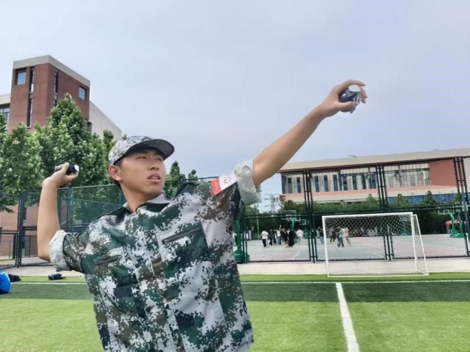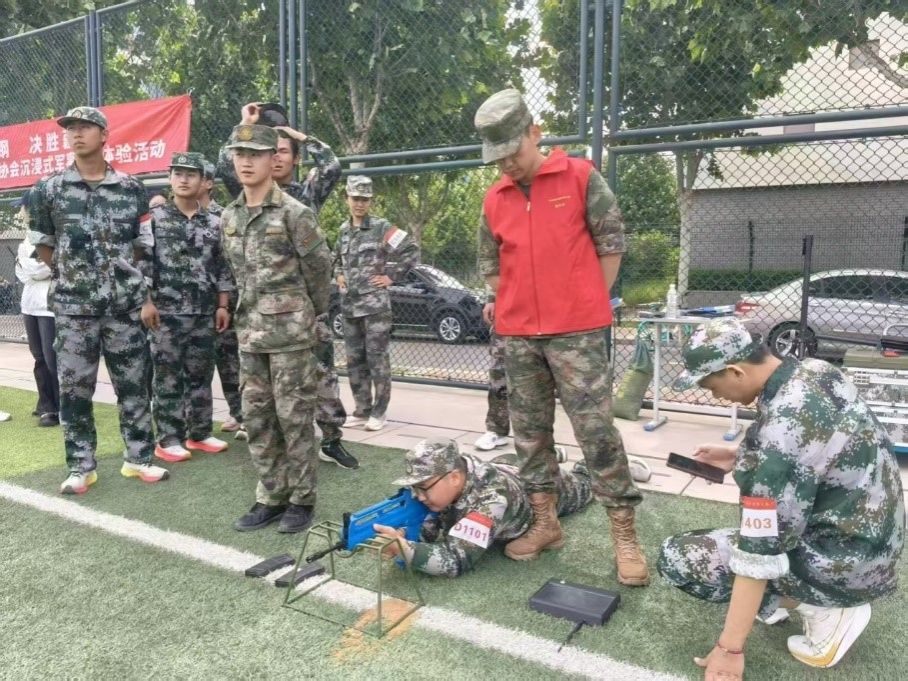 基础部党总支书记张娜,主任姜涛,河北广播电视台常驻军事教官、中国大学生国防体育竞赛裁判长杨佩玉莅临现场观摩并指导活动。24名参赛学生分成8个小组,在退役军人大学生的裁判指导下,围绕激光枪射击、手榴弹投准、战场应急救护、定向越野及无人机穿越障碍五大实战项目,展开了一场特殊的军事技能大比拼。