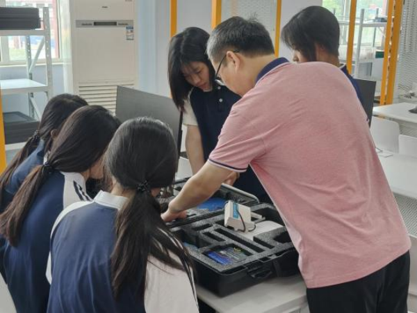 计算机应用系主任庞超介绍了“数据中心运维工程师学院”及“智能医疗服务机器人技术创新中心”建设进展情况。在创新中心,范胜娟老师通过智能机器人、人脸识别系统演示AI在医疗、城市治理中的应用;在物联网实训室,陈斌老师鼓励学子关注物联网重塑产业的潜力;计算机应用专业实训室内,夏春蕊老师展示解析了服务器的原理与构造,强调计算机技术对科学决策的支撑。