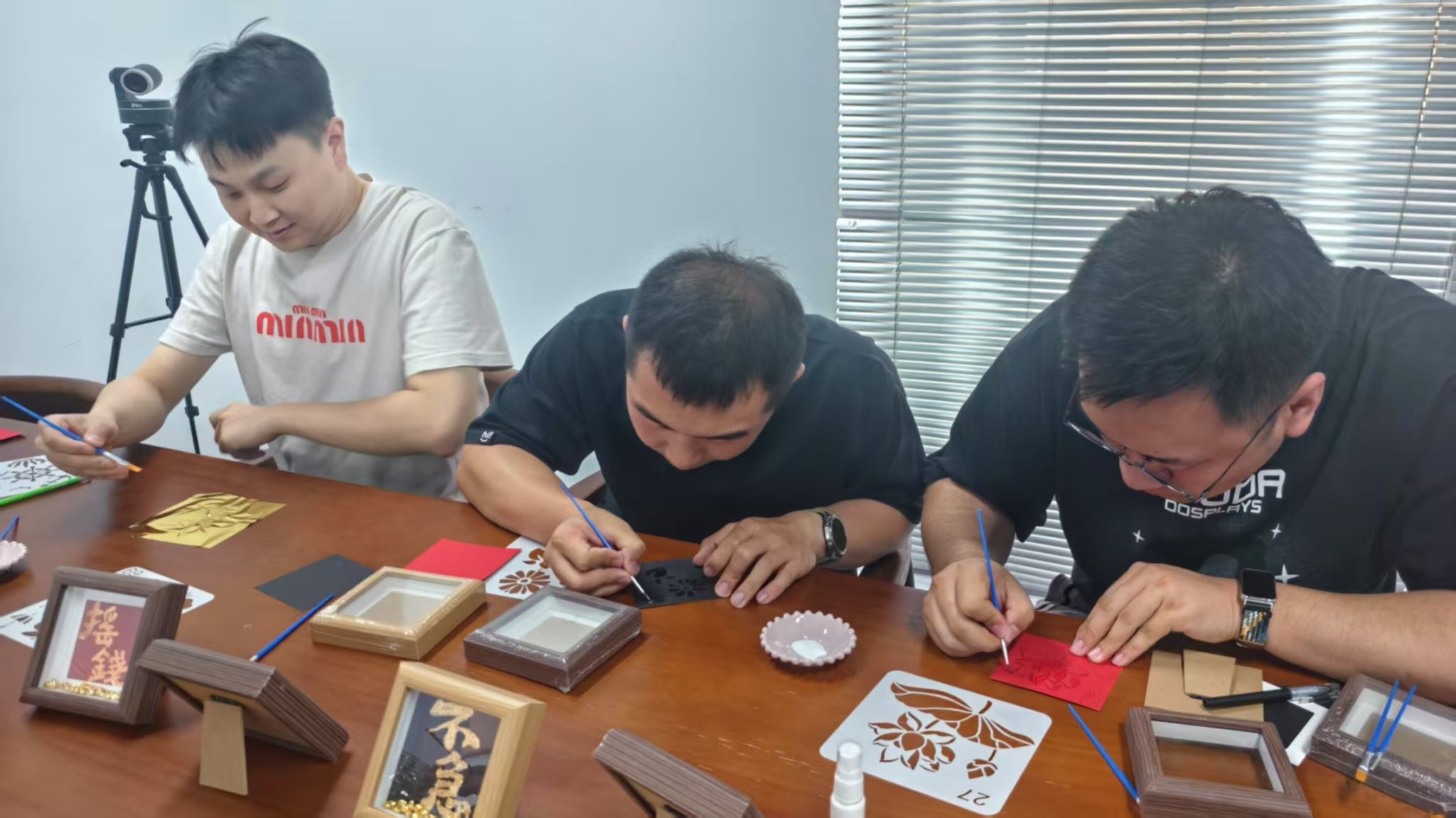 以非遗为媒,谱文化共建新篇章。5月28日下午,传媒艺术系相关负责人带队前往石家庄万维猫科技有限责任公司开展文化共建活动,将非遗螺钿技艺与烧箔技艺带到企业员工身边,通过理论讲解、工艺体验与文化分享等形式,带领参与者近距离感受千年非遗的独特魅力。该活动也是继学院与万维仁和(北京)科技有限责任公司携手共建动画捕捉中心之后“校企联动”新尝试。