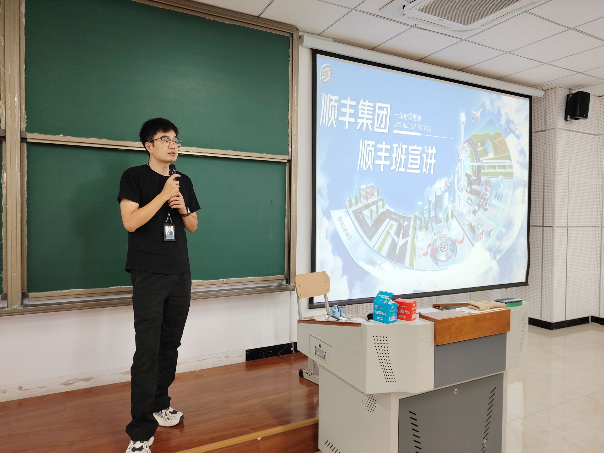 宣讲会上,河北顺丰速运有限公司人力资源部杨鹏经理代表企业做了介绍,顺丰速运作为国内物流头部企业,凭借“天网+地网+信息网” 网络优势,在物流快递领域口碑良好。随着行业数字化、智能化发展,企业对专业物流人才需求激增,希望通过订单班培育行业精英。