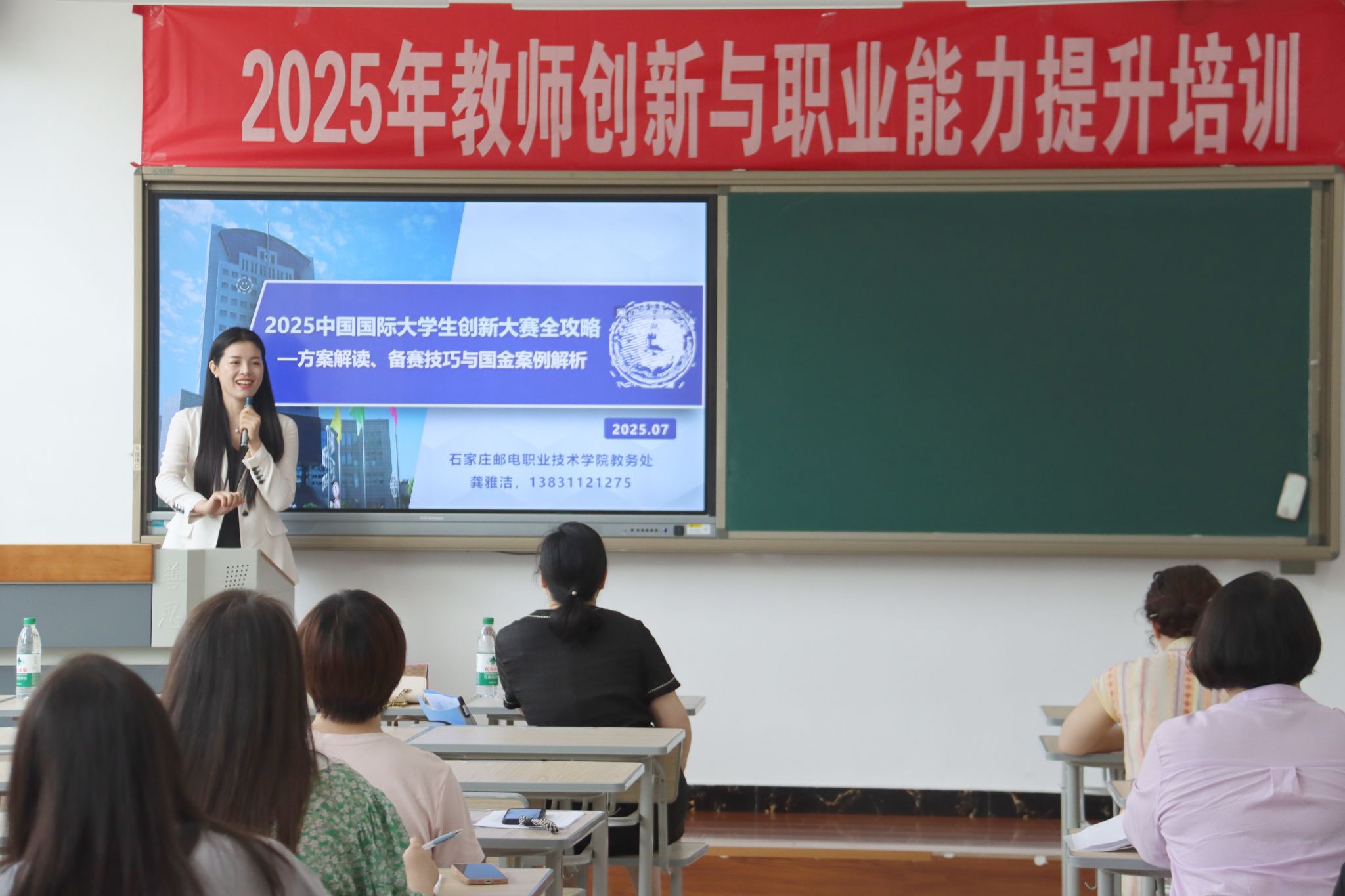 7月4日上午,石家庄邮电职业技术学院教务处教师、中国国际大学生创新大赛国金指导教师龚雅洁为教师们讲授了“2025中国国际大学生创新大赛全攻略——方案解读、备赛技巧与国金案例解析”。通过此次讲座,教师们对创新大赛有了更系统的了解,为今后指导学生参赛奠定了坚实的基础。