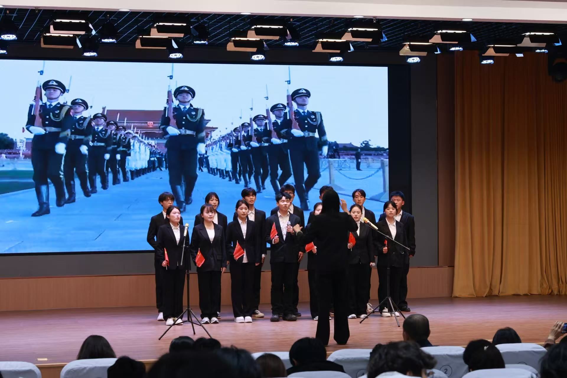 11月6日下午,由马克思主义学院主办、习近平新时代中国特色社会主义思想青年学习社组织承办的纪念抗战胜利80周年暨《毛泽东思想和中国特色社会主义理论体系概论》课程实践教学红歌会在图书馆一楼报告厅举行。本次红歌会是第二届面向全体2024级学生的比赛,也是《毛泽东思想和中国特色社会主义理论体系概论》课程多年来持续进行教学改革与创新的实践教学活动。经过任课教师班级的初赛,最终推选出17支决赛队伍,来自学院10个系约240余人同台唱响红歌,歌唱对祖国的热爱!