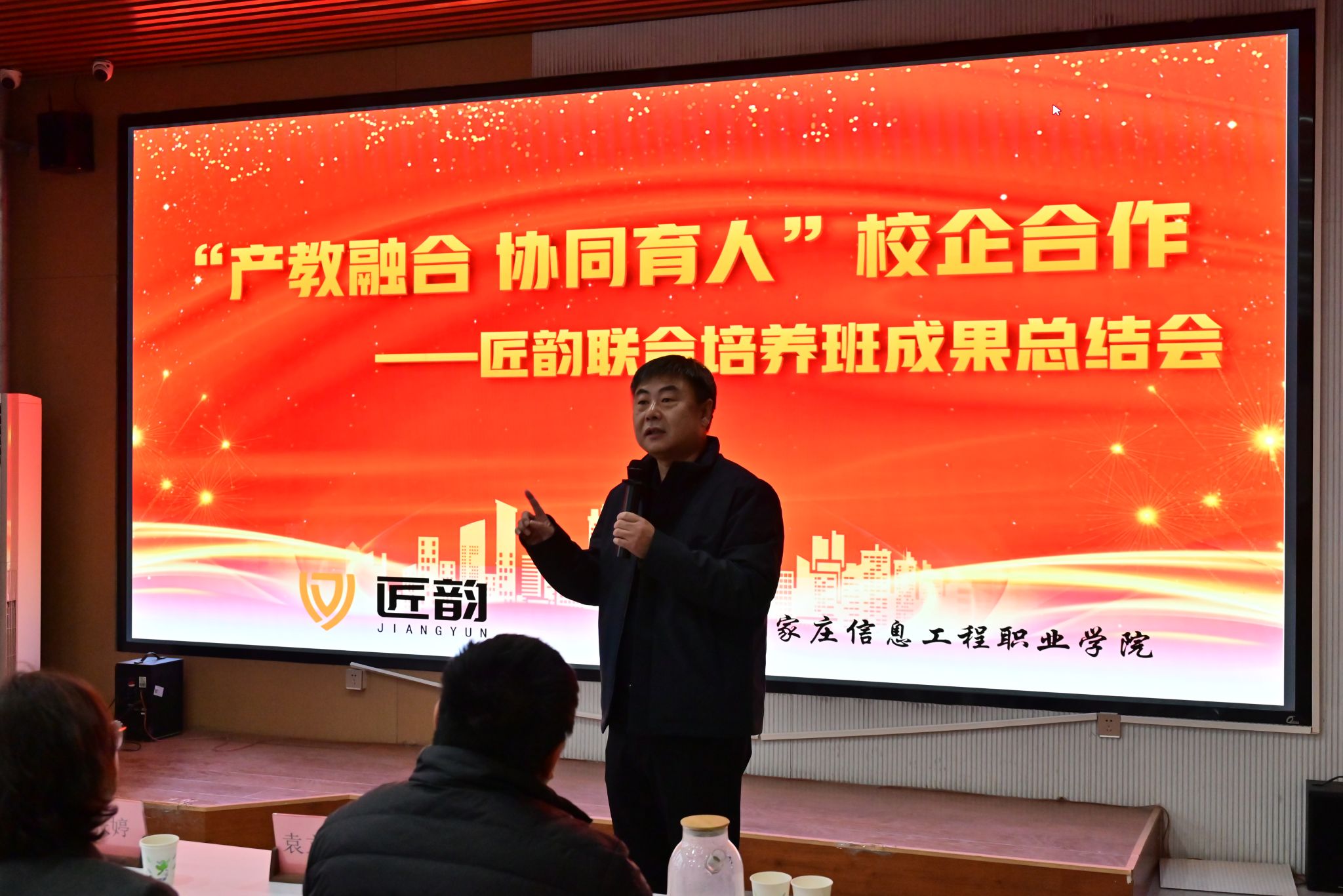 近期,传媒艺术系分别与石家庄匠韵网络科技有限公司、万维仁和(北京)科技有限责任公司联合举办“匠韵学徒制班”“万维猫学徒制班” 成果展示活动。教务处处长李永利、万维猫科技总经理袁大鹏、匠韵科技总经理刘增光、传媒艺术系书记张婷、主任袁立敏、副书记刘旭、校企双方相关人员及全体学员齐聚现场,共话育人成果,共展学子风采。
