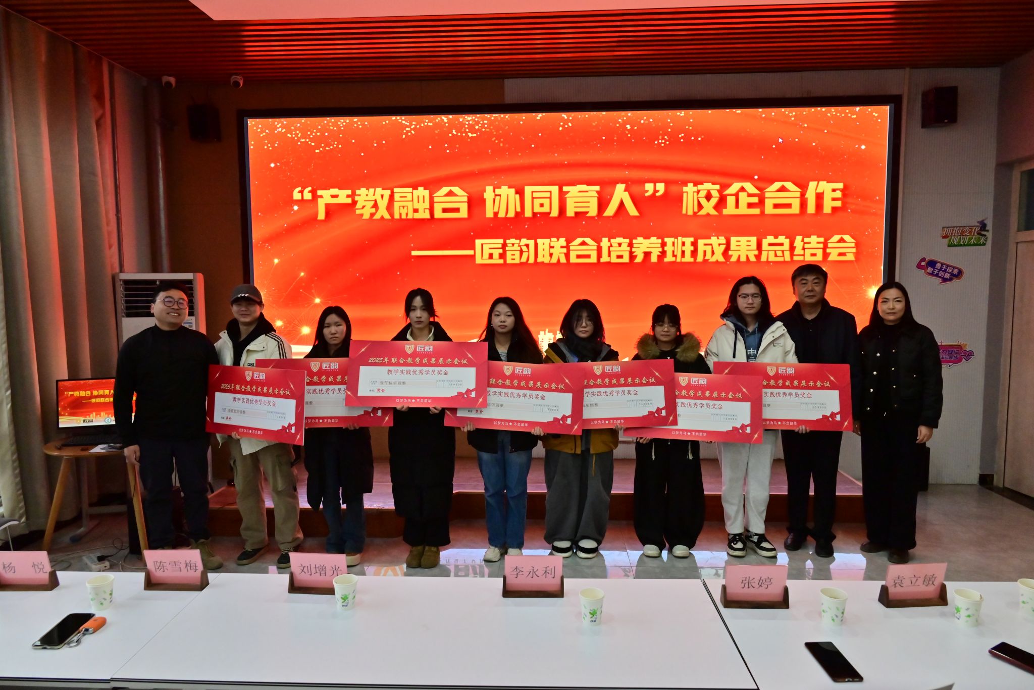 活动现场,校企双方为匠韵学徒班、万维学徒班8名优秀学生颁发荣誉证书与实践奖学金,鼓励学子再接再厉。