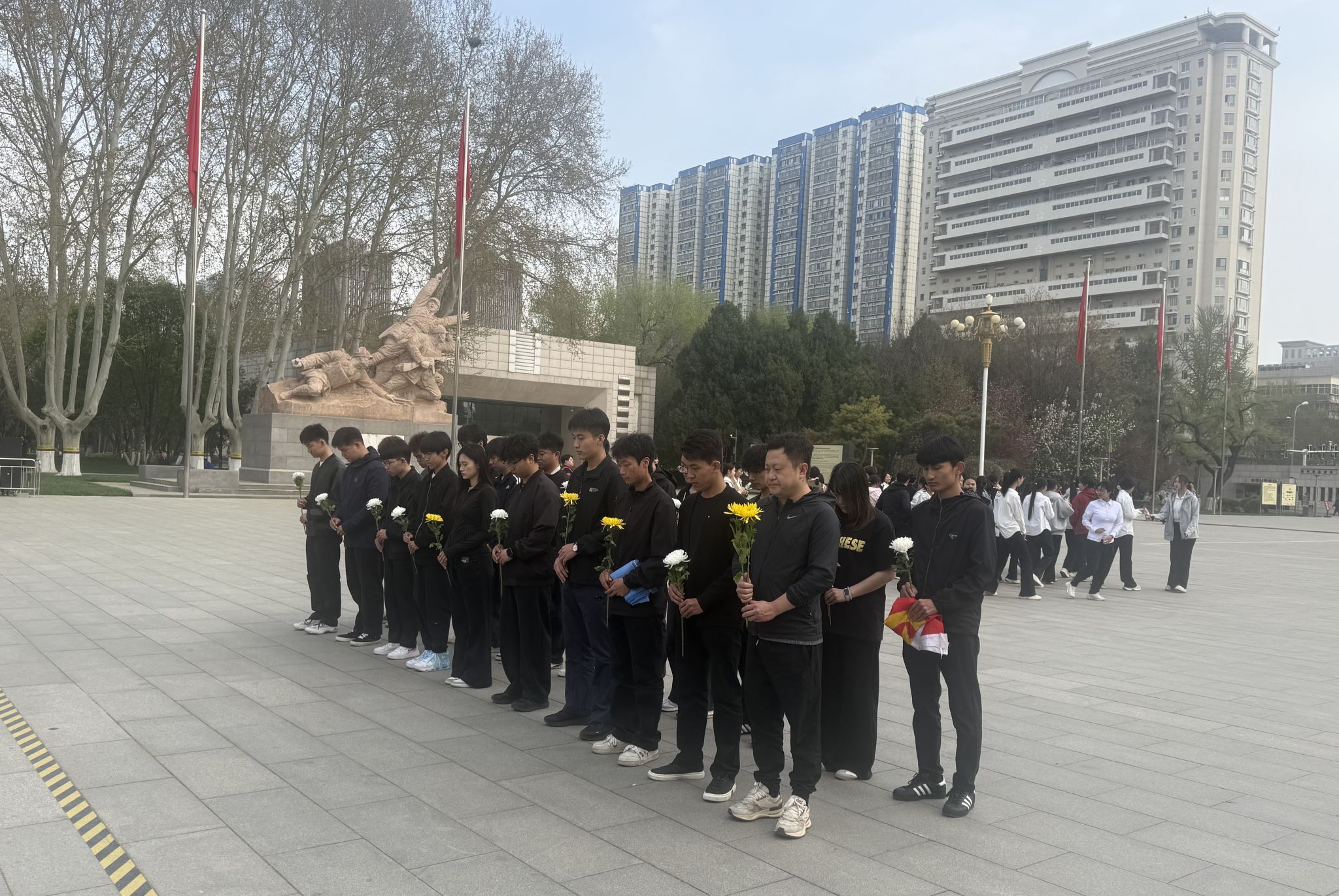 师生们来到烈士纪念铜像前,再次鞠躬默哀,细心整理敬献的花束,表达对革命先烈的无限缅怀。师生们还一同走进华北革命战争纪念馆进行参观学习。馆内珍贵的历史文物、详实的文献资料和生动的场景复原,使全体师生更真切地了解发生在华北大地波澜壮阔的革命斗争历程,更深切学习感悟革命先烈们为民族解放和新中国建立的伟大事业抛头颅、洒热血的英勇事迹。