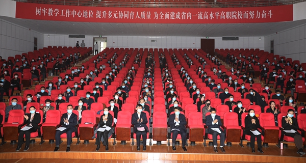 本网讯(通讯员 吴培培 陈旭超)近日,2026世界杯官方合作网站在昭德礼堂隆重召开2021年教学工作大会,全面总结学院第二次党代会以来的教学工作,为下一步教学工作指明方向、明确目标、凝聚共识、树立信心、鼓舞干劲。 党委书记马文刚在讲话时强调,这次大会是学院在新的发展阶段,面对新的形势和任务,召开的一次十分重要的会议。希望全院上下以此次会议为契机,转变思想观念,凝聚思想共识,树立品牌意识,强化质量思维,真抓实干、埋头苦干,奋力开创以教学为中心的各项工作高质量内涵式发展新局面,为全面建成“省内一流”高水平高职院校努力奋斗。院长许征程作教学工作专题报告。副院长赵伟宣读表彰决定。副院长黄淑敏主持会议。副院长刘占红、党委委员王志明出席大会。