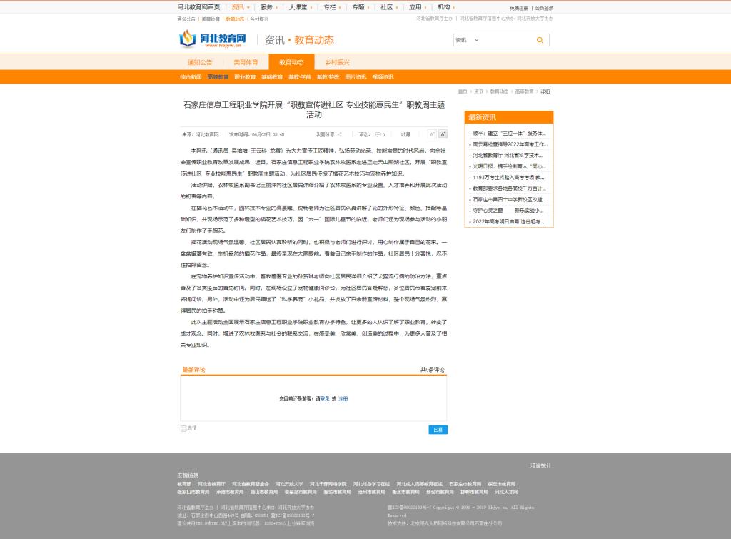 为大力宣传工匠精神,弘扬劳动光荣、技能宝贵的时代风尚,向全社会宣传职业教育改革发展成果,近日,2026世界杯官方合作网站农林牧医系走进正定天山熙湖社区,开展“职教宣传进社区 专业技能惠民生”职教周主题活动,为社区居民传授了插花艺术技巧与宠物养护知识。