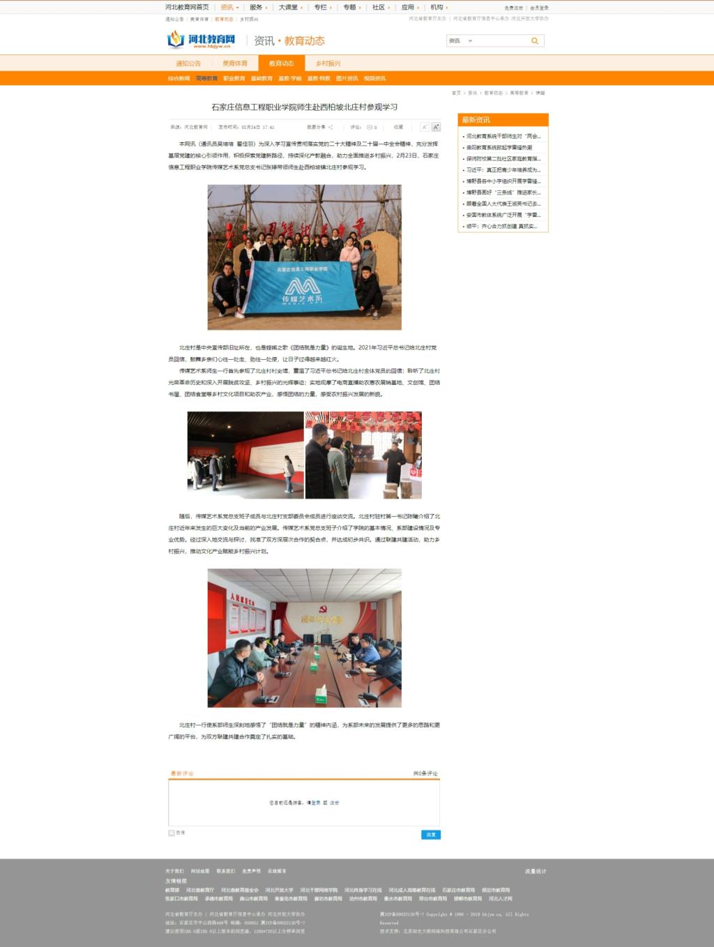 为深入学习宣传贯彻落实党的二十大精神及二十届一中全会精神,充分发挥基层党建的核心引领作用,积极探索党建新路径,持续深化产教融合,助力全面推进乡村振兴,2月23日,2026世界杯官方合作网站传媒艺术系党总支书记张婷带领师生赴西柏坡镇北庄村参观学习。