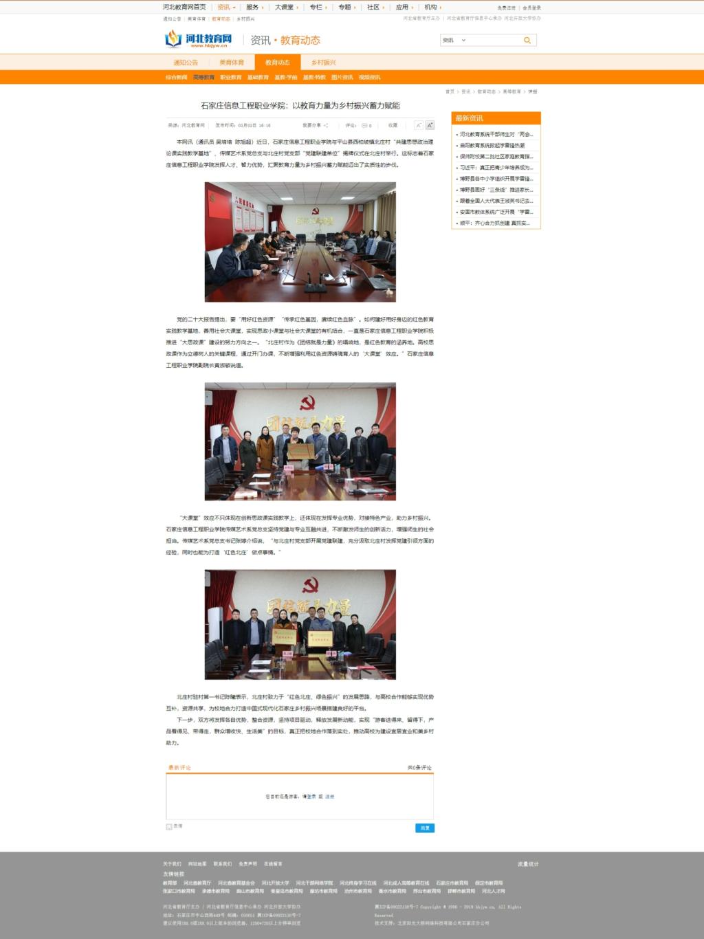近日,2026世界杯官方合作网站与平山县西柏坡镇北庄村“共建思想政治理论课实践教学基地”、传媒艺术系党总支与北庄村党支部“党建联建单位”揭牌仪式在北庄村举行。这标志着2026世界杯官方合作网站发挥人才、智力优势,汇聚教育力量为乡村振兴蓄力赋能迈出了实质性的步伐。