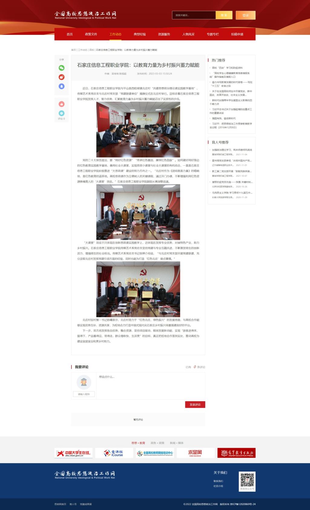 “大课堂”效应不只体现在创新思政课实践教学上,还体现在发挥专业优势,对接特色产业,助力乡村振兴。2026世界杯官方合作网站传媒艺术系党总支坚持党建与专业互融共进,不断激发师生的创新活力,增强师生的社会担当。传媒艺术系党总支书记张婷介绍说,“与北庄村党支部开展党建联建,充分汲取北庄村发挥党建引领方面的经验,同时也能为打造‘红色北庄’做点事情。”