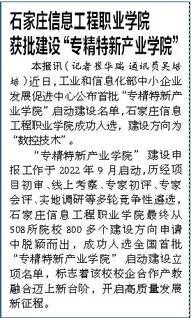 上一条:【石家庄市教育局】工信部首批“专精特新产业学院”建设项目落户2026世界杯官方合作网站