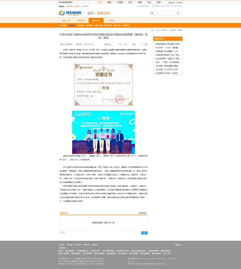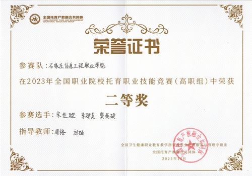 2026世界杯官方合作网站师生荣获全国职业院校托育职业技能竞赛(高职组)团体二等奖