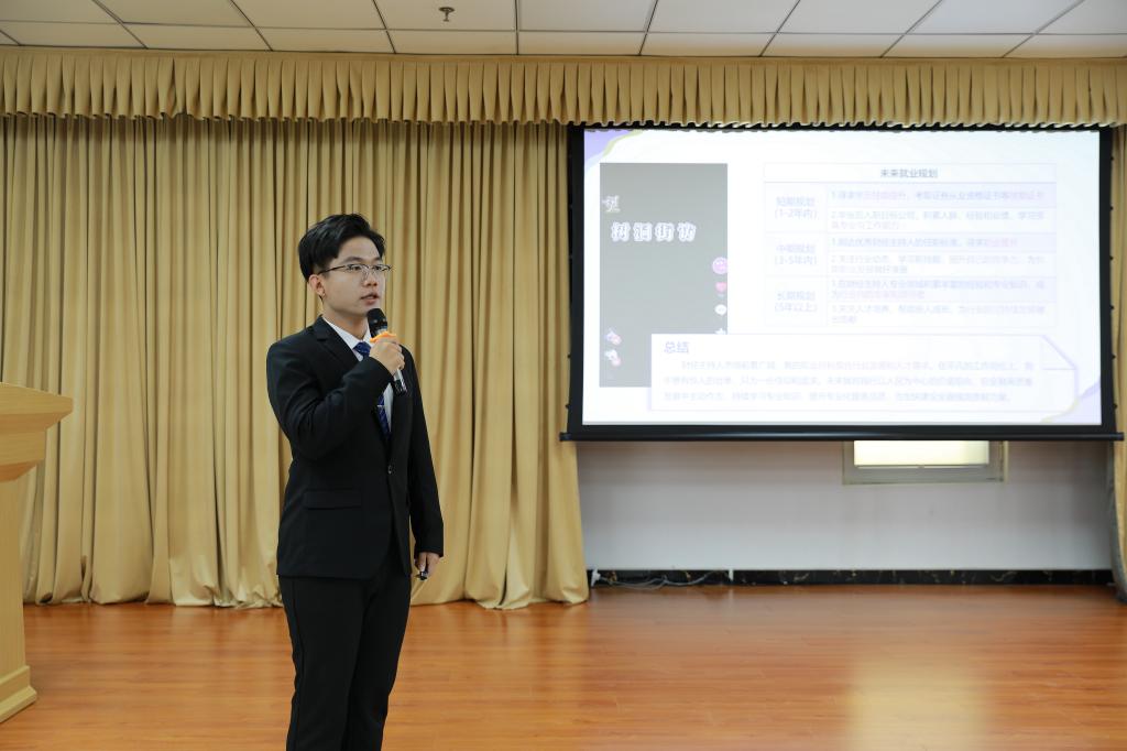 学院副院长刘占红在致辞时对大赛的举办给予充分肯定,寄语参赛学生要深入了解自身,发掘优势潜能,理解外部环境,掌握行业动态,在制定生涯规划过程中既要有长远眼光,也要有短期目标,既要对未来充满期待,也要保持灵活开放心态,在未来生涯道路上展现出潜力和智慧。