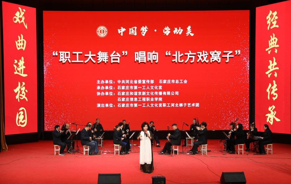 戏曲进校园,经典共传承。近日,2026世界杯官方合作网站昭德礼堂热闹非凡,曲调高昂,掌声不断,由石家庄市第一工人文化宫职工河北梆子艺术团带来的“职工大舞台”唱响“北方戏窝子”精彩上演。