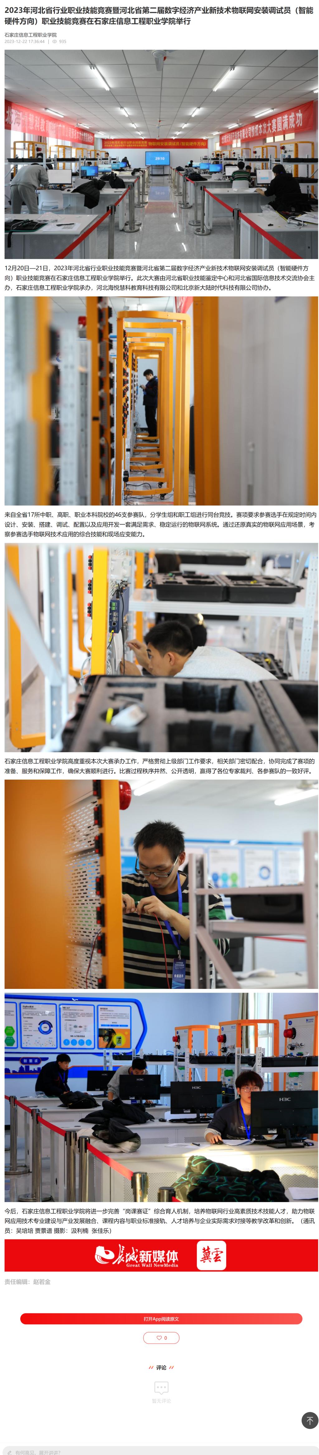 原文链接:2023年河北省行业职业技能竞赛暨河北省第二届数字经济产业新技术物联网安装调试员(智能硬件方向)职业技能竞赛在2026世界杯官方合作网站举行