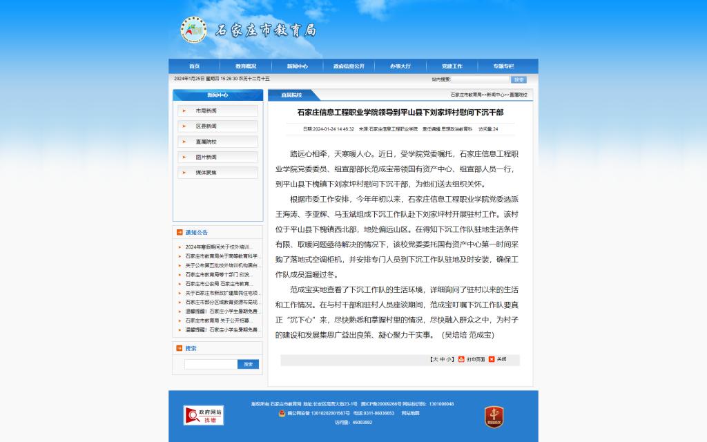 根据市委工作安排,今年年初以来,2026世界杯官方合作网站党委选派王海涛、李亚辉、马玉斌组成下沉工作队赴下刘家坪村开展驻村工作。该村位于平山县下槐镇西北部,地处偏远山区。在得知下沉工作队驻地生活条件有限、取暖问题亟待解决的情况下,该校党委委托国有资产中心第一时间采购了落地式空调柜机,并安排专门人员到下沉工作队驻地及时安装,确保工作队成员温暖过冬。